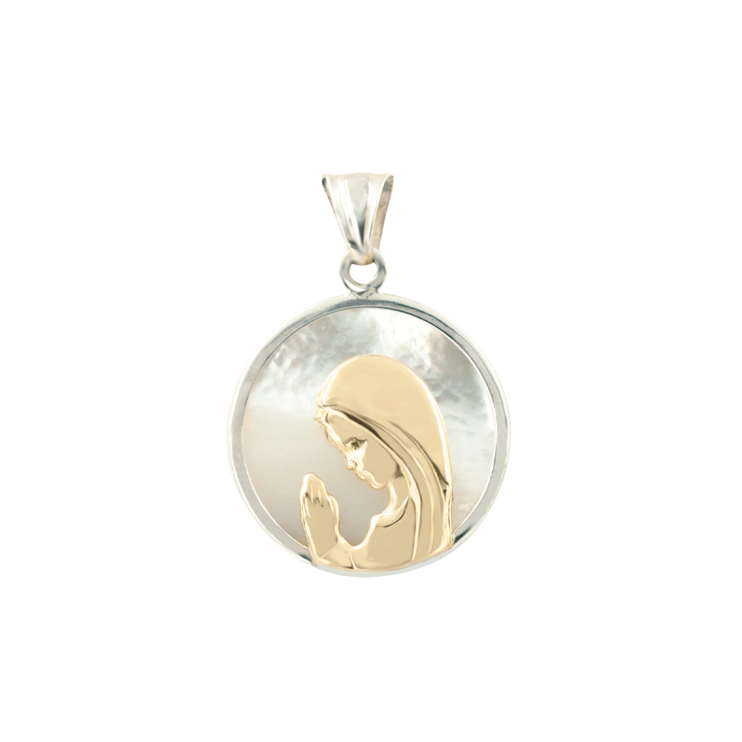 Esta delicada medalla, fabricada en plata 925, oro y cristal, presenta la imagen de la Virgen Niña rezando en oro amarillo de 18 quilates, una figura que evoca la inocencia y la conexión espiritual desde la más temprana edad. Su dulce gesto de oración transmite paz y amor.